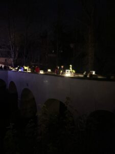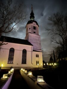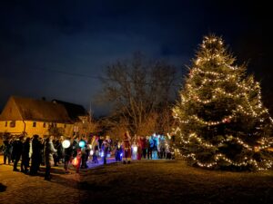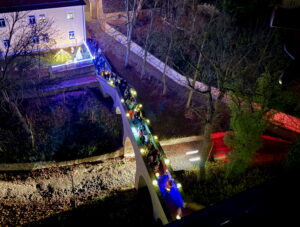 An mehreren Stationen wurden nacheinander die Lichter eingeschaltet: natürlich zunächst am Weihnachtsbaum in der Auenstraße, dann der Advents-Stern auf dem Kirchturm und folglich der Adventskalender auf der sanierten Kirchbrücke. Die 24 gestalteten Lichtelemente können bis Ende Dezember entdeckt und bestaunt werden.